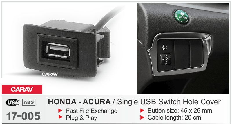 —CARAV 17-005 USB разъем в штатную заглушку / 1 порт HONDA-ACURA (некоторые модели)
