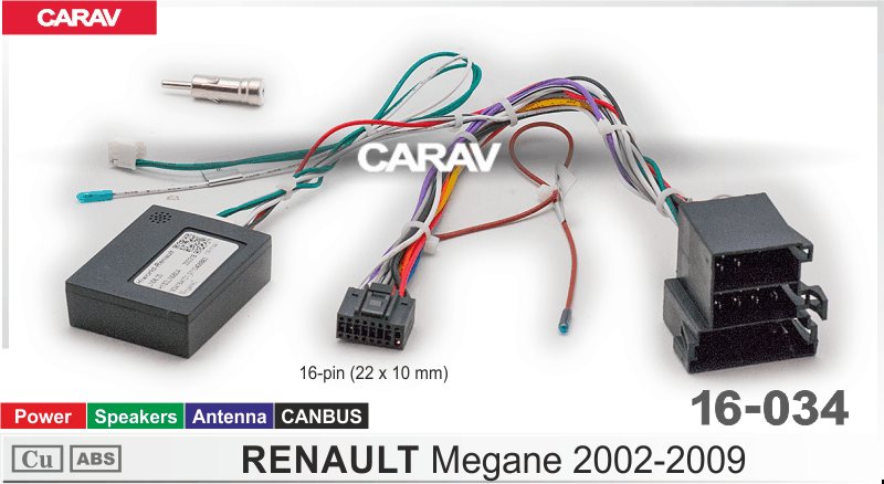 CARAV 16-034 разъем 16-pin RENAULT Megane 2002-2009 (Питание + Динамики + Антенна)