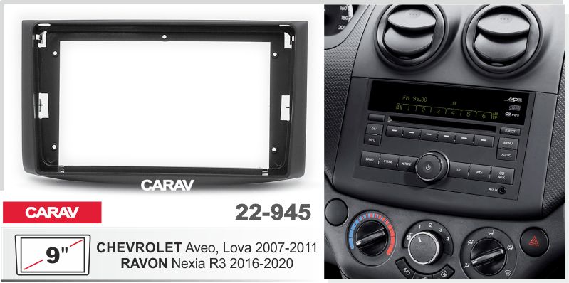 CARAV 22-945 (9 дюйм. монтажная рамка для а/м CHEVROLET Aveo, Lova 2007-11; Captiva, Epica 2006-11 / RAVON Nexia R3 2016+