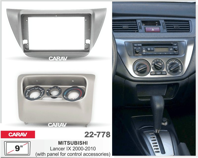 —CARAV 22-778 (9 дюйм. монтажная рамка для а/м MITSUBISHI Lancer IХ 2000-10 (в комплекте панель для установки регулировок серый)