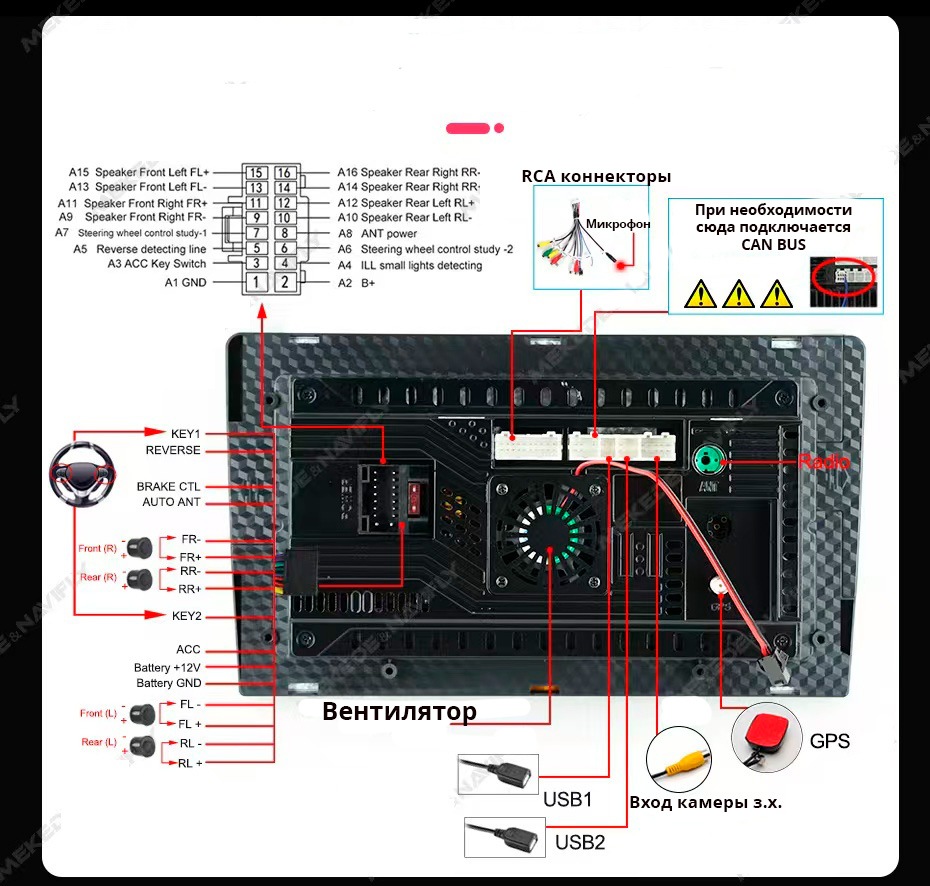 | Подключение камеры заднего хода |